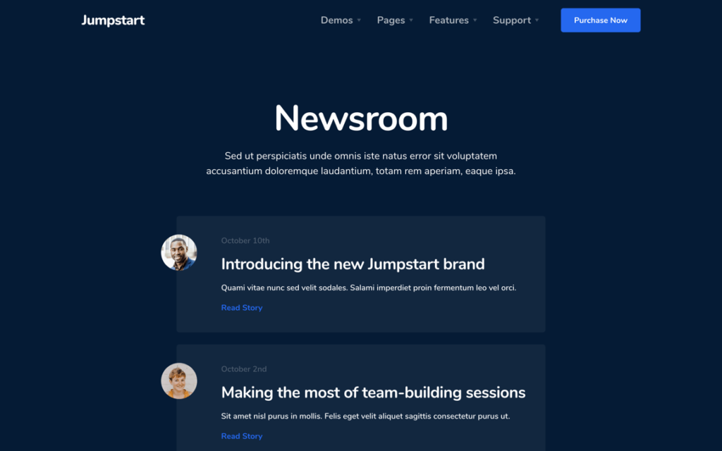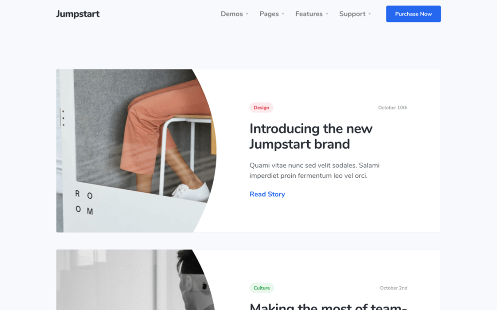 Launch your site in style with Jumpstart, a tidy collection of crafted pages and modular components.
