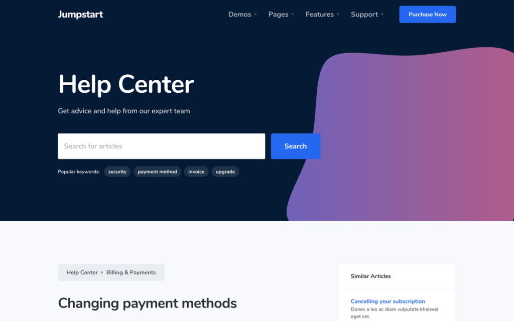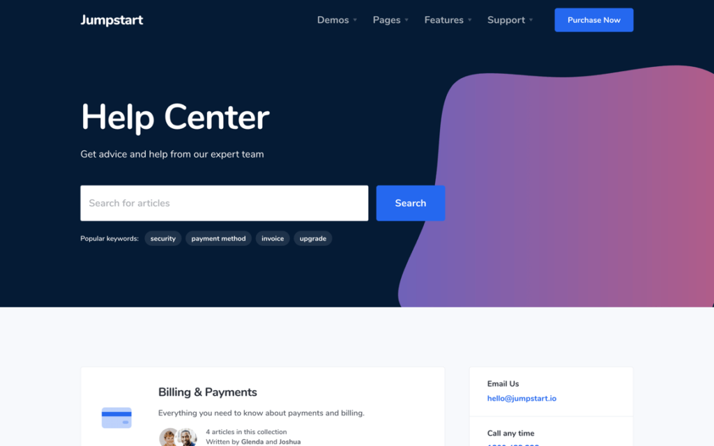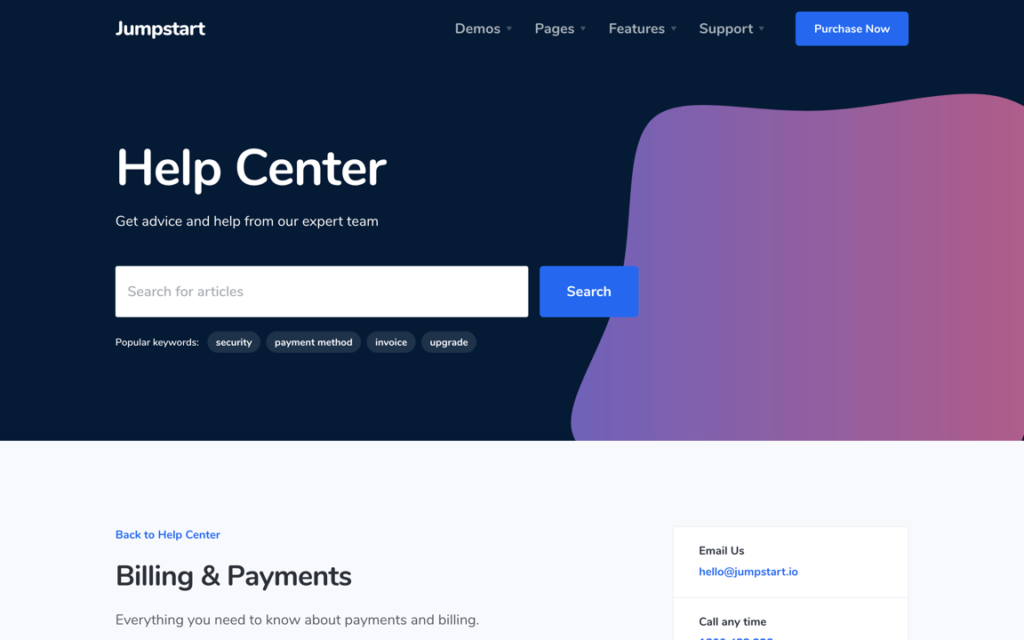 Create rich layouts, using any combination of elements. Jumpstart’s UI elements are designed to play nice together, wherever you place them.
